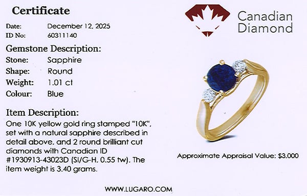 Ring includes Canadian diamond certificates.
