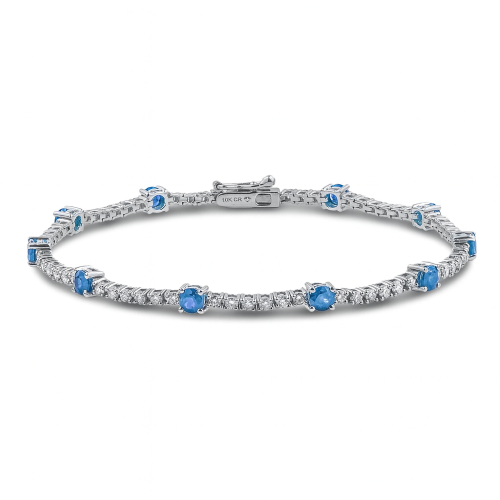 Round Sapphire and Canadian Diamond Tennis Bracelet in White Gold