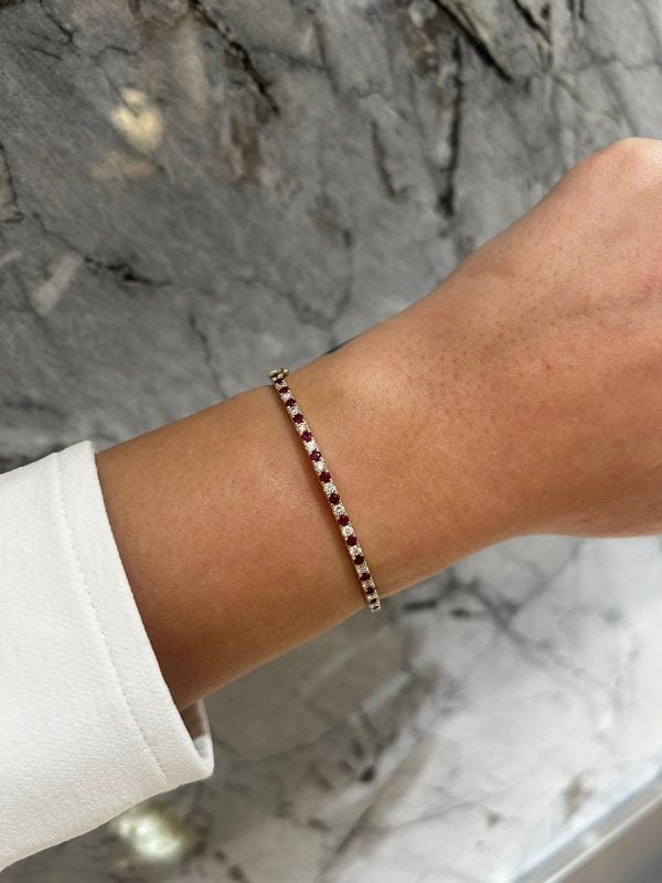 Ruby and Canadian Diamond Bangle Bracelet in Yellow Gold