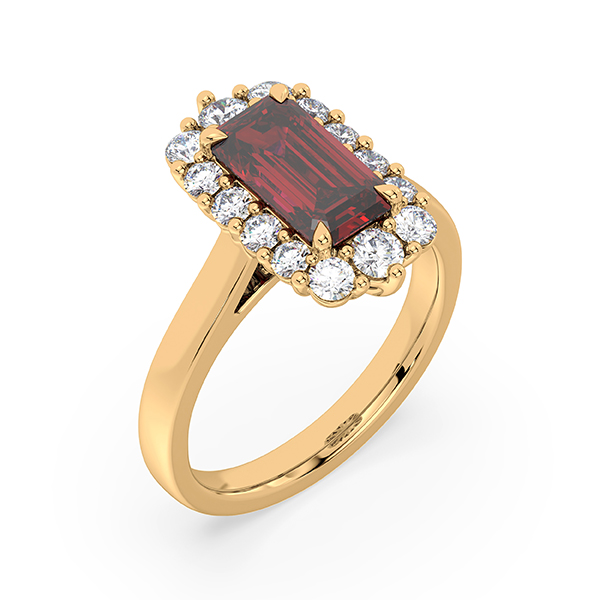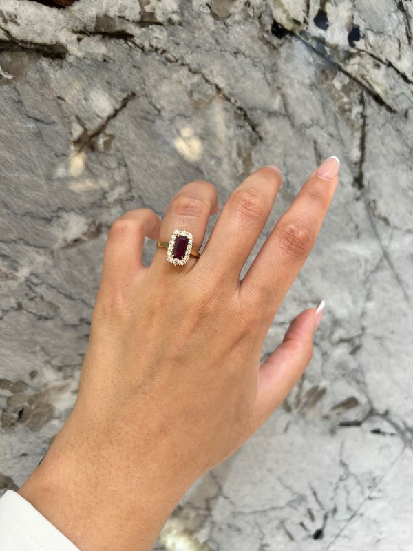 Be the first to review “Ruby and De Beers Forevermark Diamond Halo Ring in 18K Yellow Gold”