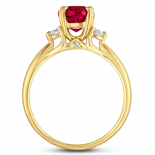 14K yellow gold ring featuring a 0.97 carat ruby, accented by 0.21 carat total weight De Beers Forevermark diamonds and 0.01 carat total weight melee diamonds.