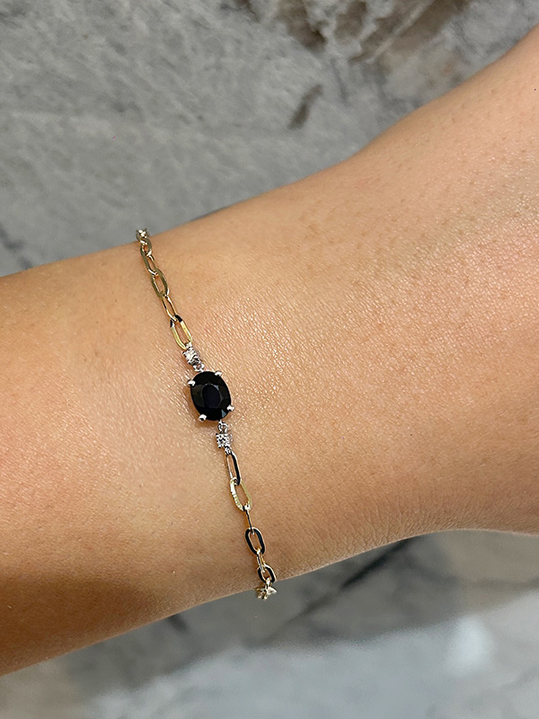 Be the first to review “Sapphire and Canadian Diamond Paperclip Chain Bracelet in Yellow and White Gold”