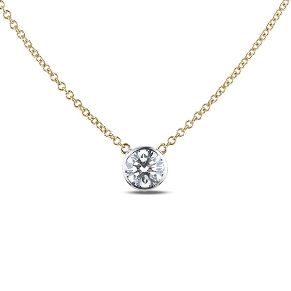 Solitaire Bezel Set Canadian Diamond Necklace in Yellow and White Gold | 0.16 Carat