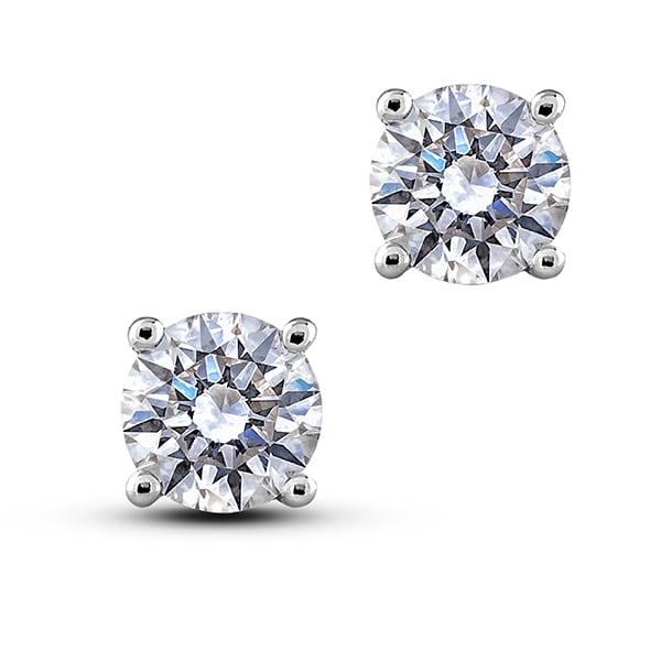 14K white gold diamond stud earrings featuring 3.00 carat total weight round brilliant cut Canadian diamonds.