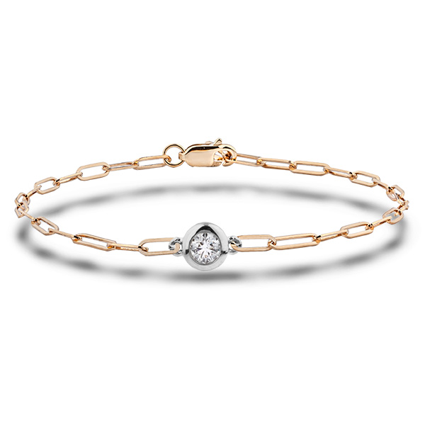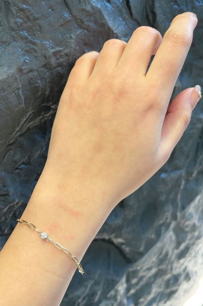 Solitaire Diamond Bezel Set Paperclip Bracelet in Yellow and White Gold