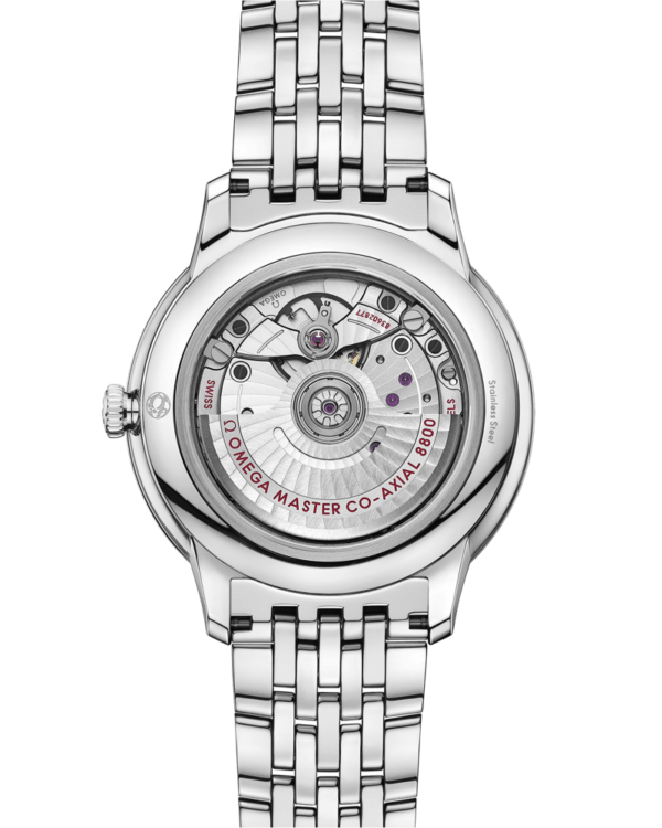 This Master Chronometer certified watch is presented on a stainless steel bracelet and is driven by the OMEGA Master Co-Axial Calibre 8800, which can be admired through the scratch-resistant sapphire crystal caseback.