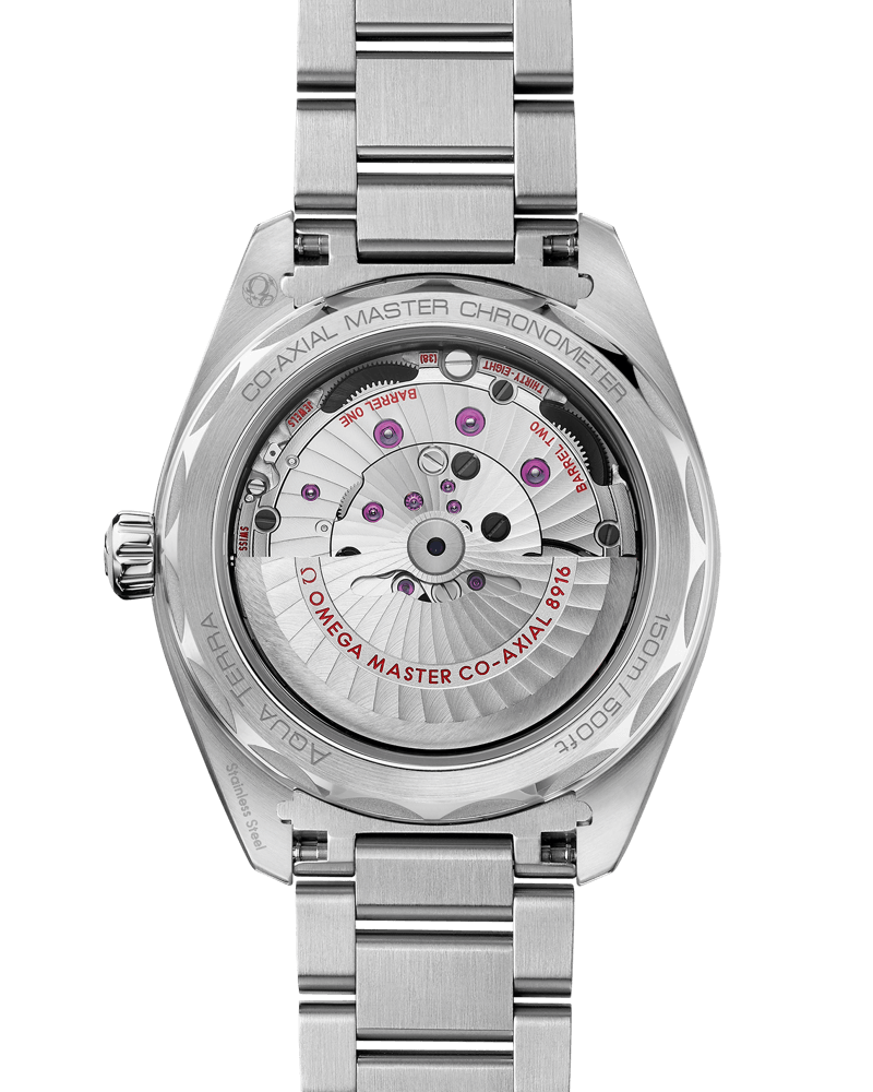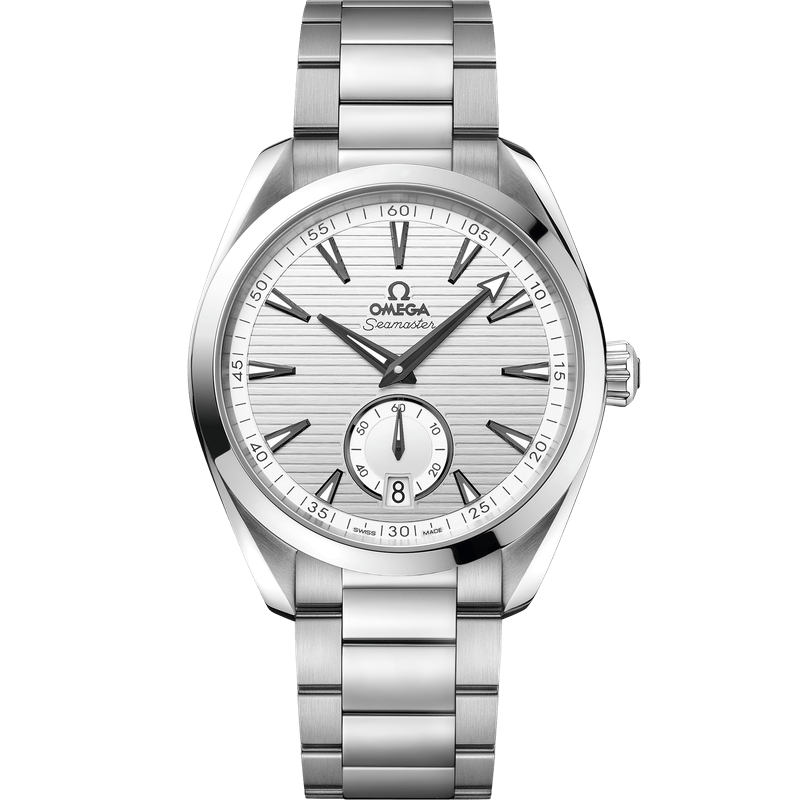 The Seamaster Aqua Terra is a superb tribute to OMEGA’s rich maritime heritage. In this 41 mm model, the symmetrical case has been crafted from stainless steel, with a wave-edged design featured on the caseback. The brushed silvery dial is distinguished by a horizontal “teak” pattern, along with a date window at 6H and an opaline Small Seconds subdial featuring a blackened ring. The design is further complemented by blackened hands and indexes filled with white Super-LumiNova, as well as sandblasted minutes and seconds tracks on the dial and subdial. Presented on a polished and brushed bracelet, this timepiece is powered by the OMEGA Co-Axial Master Chronometer calibre 8916, certified at the industry’s highest standard by the Swiss Federal Institute of Metrology (METAS).