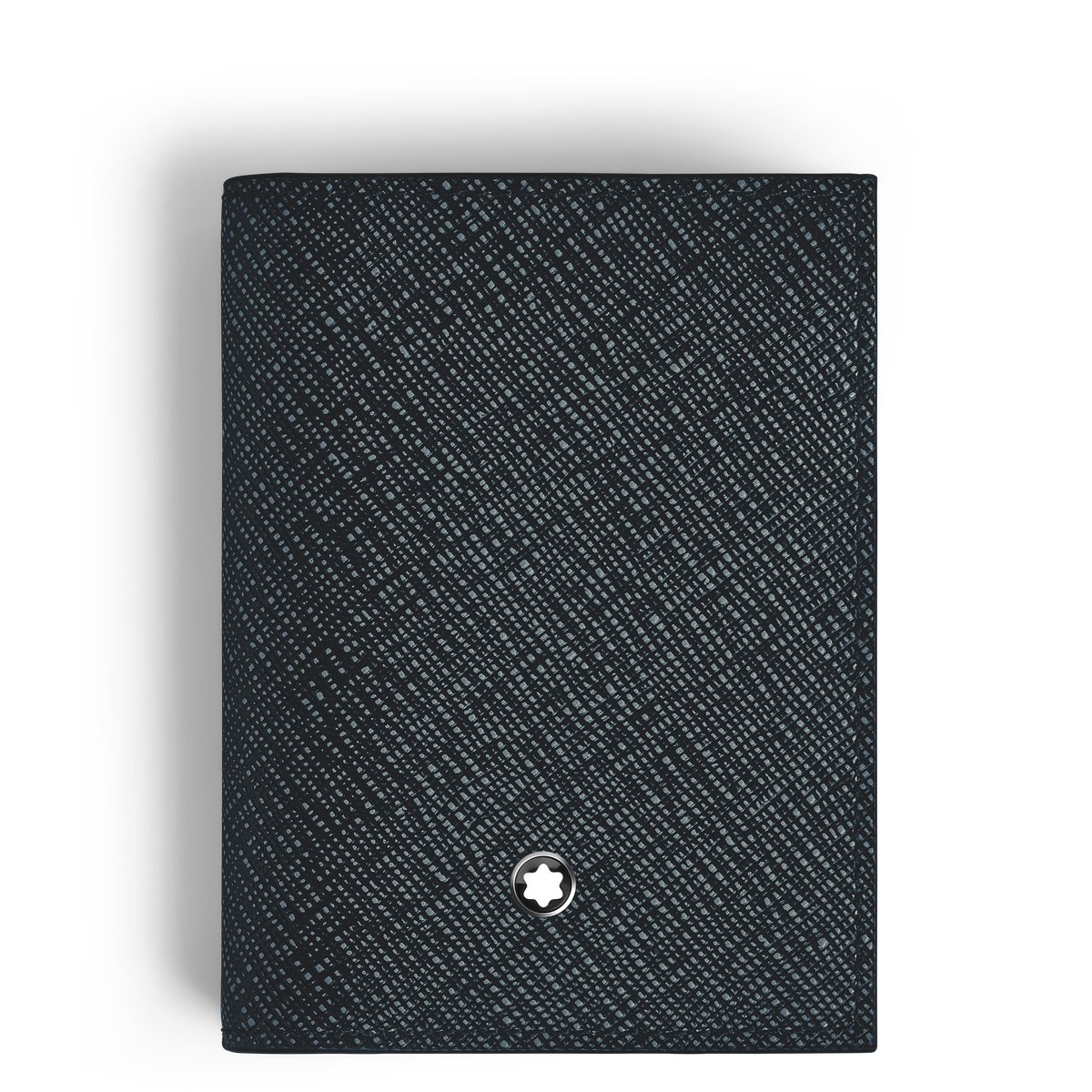 Compact yet versatile, this card holder is crafted from two-tone embossed sartorial leather in a sophisticated combination of blue and black. Designed with functional details inside and out, it features three credit card slots, a business card compartment, and an additional pocket on the interior, while the exterior includes an extra slot for a fourth credit card.