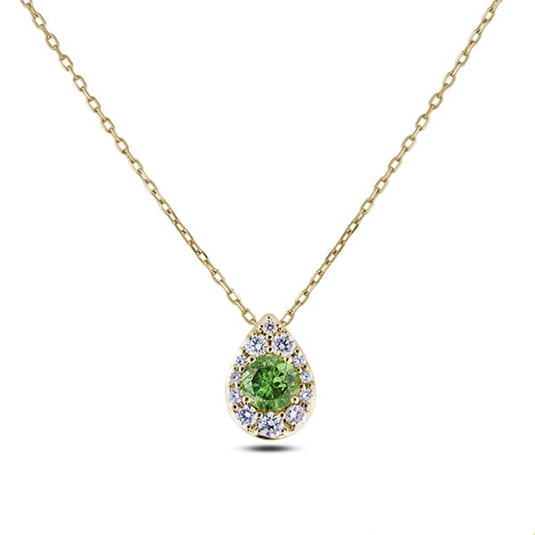 Be the first to review “Tanzanian Origin Green Sapphire and Canadian Diamond Halo Pear Shaped Pendant In Yellow Gold”