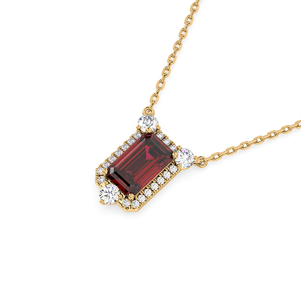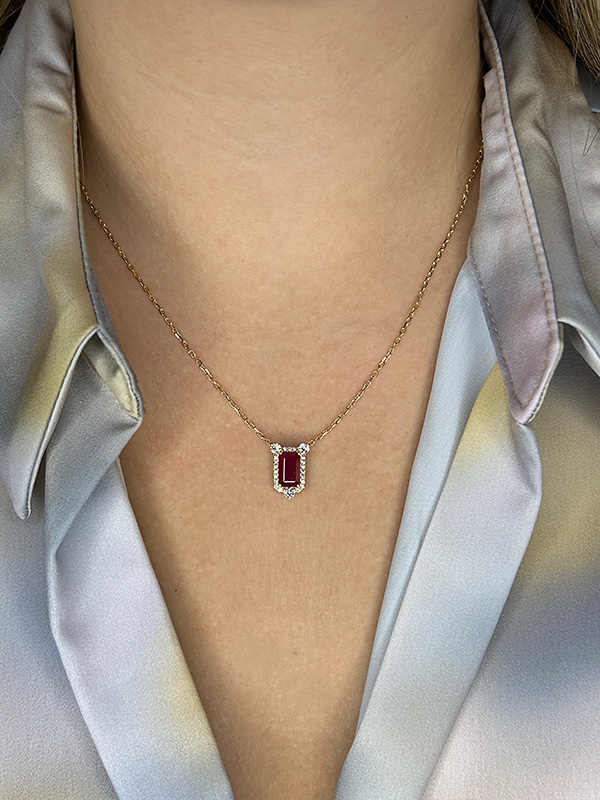 Be the first to review “Vintage Inspired Ruby and De Beers Forevermark Diamond Halo Pendant in 18K Yellow Gold”
