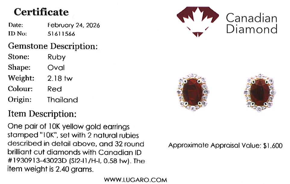 Diamond halo earrings includes a Canadian diamond certificate.